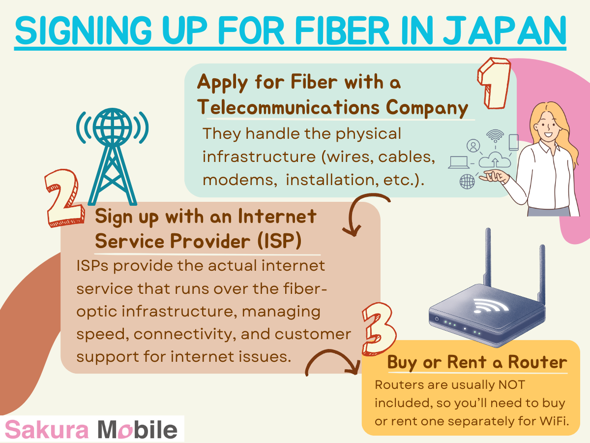 TIP: Before you sign the contract, you’ll need to check if your housing allows fiber installation (share houses usually don’t). If you’re in a situation where fiber installation isn’t an option, consider Sakura Mobile’s Home WiFi—no construction required! Read here to learn about the differences between fiber and home WiFi: