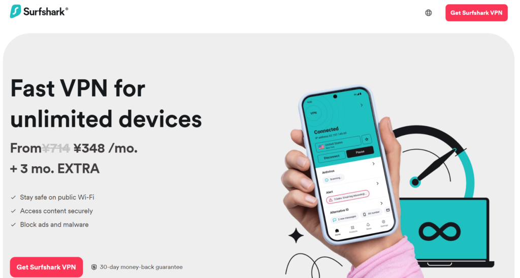 A budget-friendly VPN that impresses with performance. Surfshark has ~3,200 servers worldwide (62 in Japan), and lets you connect unlimited devices. It unblocked all teted services without issues
