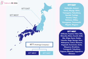 NTT EAST for the Eastern part of Japan and NTT WEST for the Western part.