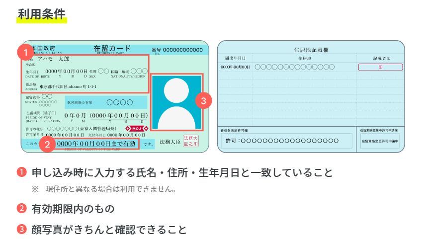 Those with “Permanent Resident” status can apply using just their residence card. However, newcomers to Japan who are still settling in may find this requirement difficult to meet, especially if they urgently need a phone number.