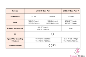 LINEMO’s Best Plan at 900 JPY per month for 3 GB of data is the lowest price under 10 GB among all carriers in Japan.