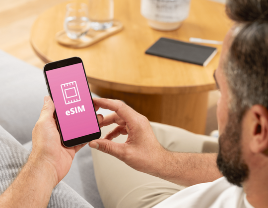 An eSIM (embedded SIM) is a digital version of a physical SIM card. Instead of swapping out a physical card, you can activate a mobile plan by scanning a QR code – simple as that.