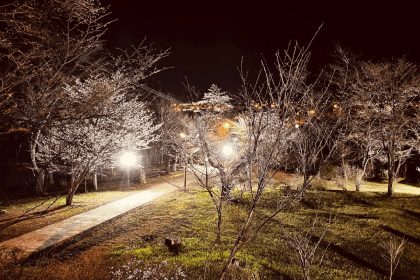 Famous for its night sakura (yozakura) festival, the park draws many visitors who enjoy the glowing beauty of the illuminated blossoms. Visitors can also enjoy breathtaking views of the surrounding landscape from the park’s high peaks.