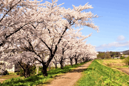 The Yoichi River Cherry Blossom Trees line both sides of the downstream Yoichi River, with nearly 400 cherry trees, mostly somei yoshino.