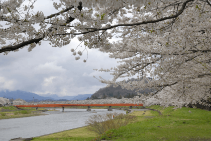 The second famous sakura spot in Kakunodate is along the Hinokinai River, where somei yoshino cherry blossom trees line a 2-kilometer stretch of the river’s embankment.