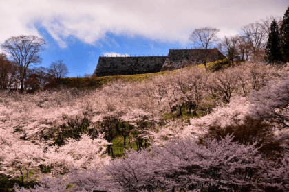 The park is home to 2,500 trees, including varieties such as somei yoshino, yamazakura, and oshimazakura. In 1948, the area was designated as Fukushima Prefectural Natural Park and named “Kasumigajo Castle Park,” inspired by the mist-like profusion of pink petals during the cherry blossoms bloom.