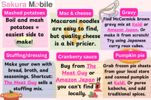 Every family has their own traditional Thanksgiving foods, but here are some of the basics and tips for how to prepare them in Japan: