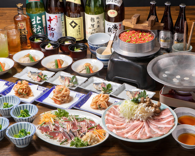 This sake-specialized pub offers over 50 varieties of sake at prime cost. There are three courses priced at 4000 JPY, 5000 JPY, and 6500 JPY, all including 2 hours of all-you-can-drink sake. Alternatively, you can order just the all-you-can-drink sake for 2980 JPY. A variety of side dishes priced around $2.50-$6 can be ordered individually, perfect for beginners exploring sake and Japanese dishes!