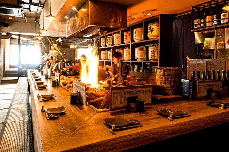 The food is cooked using “robata-yaki,” an ancient Japanese grilling method. Fresh ingredients are grilled over charcoal, enhancing both aroma and flavor.